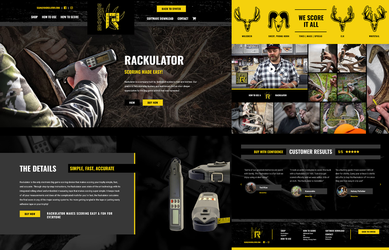 Whether they want to admit it or not, if someone shoots a big buck they want to know what it scores. This is where Syntek Outdoors Rackulator electronic scoring device has taken over. STUBZ was brought in to assist with brand overhaul, grow awareness, and increase revenue.